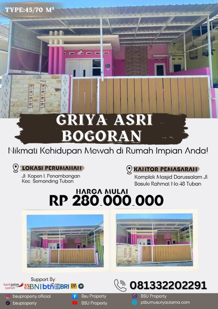Jangan tunggu lama, saatnya miliki rumah minimalis modern dengan harga terjangkau di Griya Asri Bogoran.