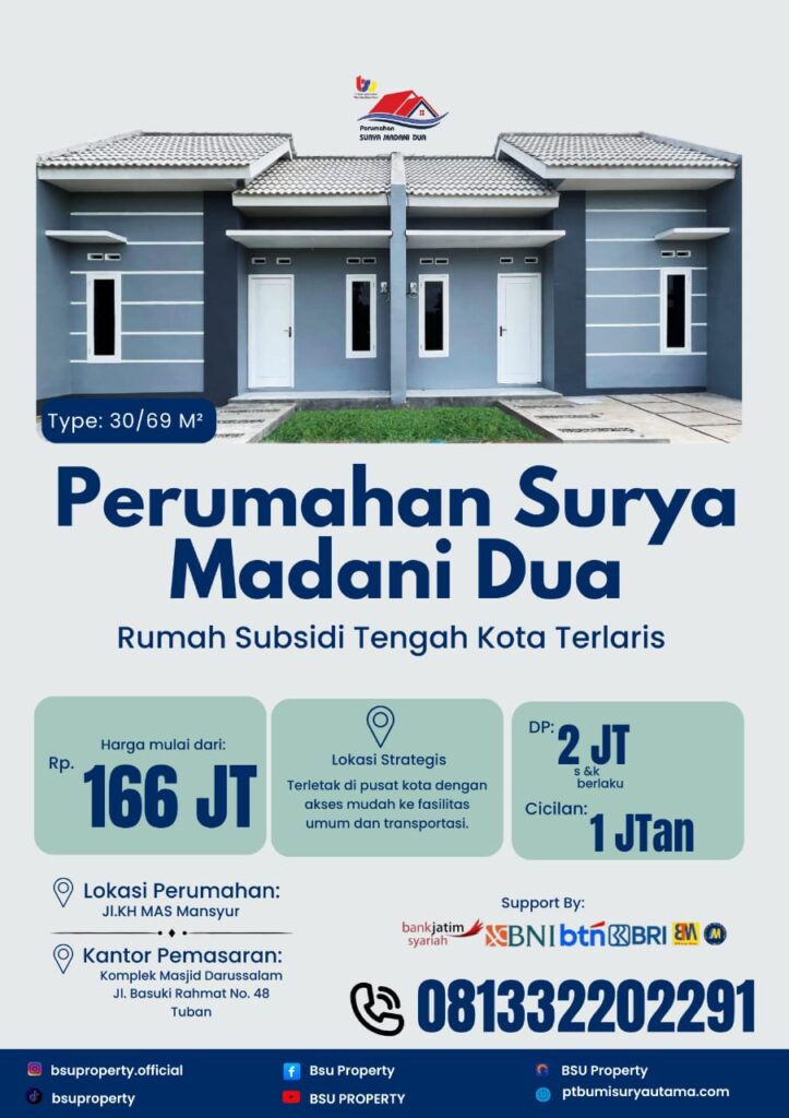 - Diantara rumah subsidi di kabupaten Tuban SURYA MADANI DUA paling dekat dengan kota tidak ada yg lain